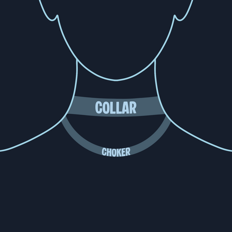 This necklace is designed to be worn as a true collar, sitting snugly around the neck. There’s a sweet spot where it feels secure enough to stay in place but not uncomfortably tight. All collars come with a built-in sizing chain that is 1" in length.  Neck sizes can naturally fluctuate, please choose a base size that accounts for the tightest fit you’ll need.